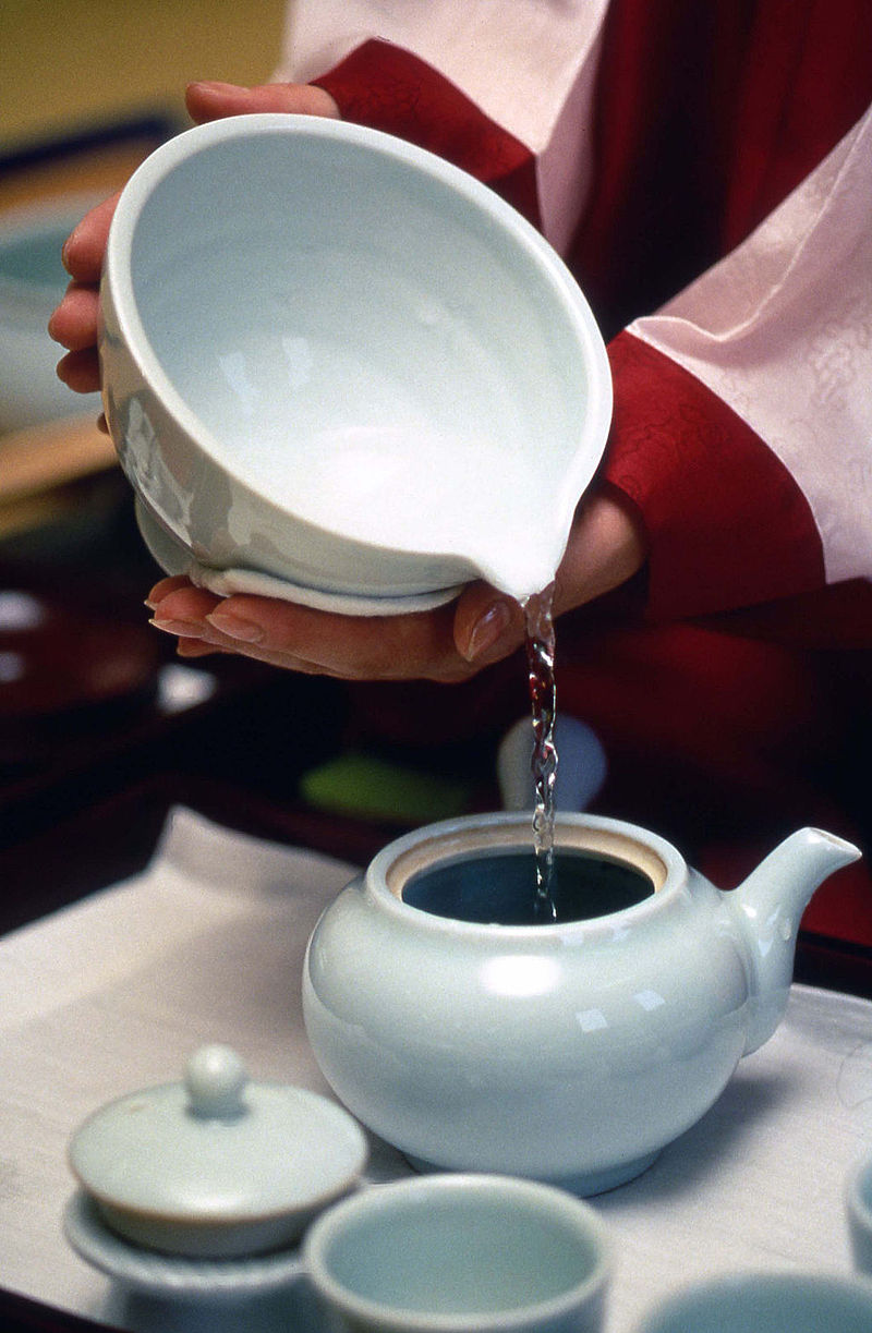 Generally, lower-quality green teas are steeped hotter and longer while higher-quality teas are steeped cooler and shorter, but usually for multiple times (2-3 typically). Steeping too hot or for too long results in the release of excessive amounts of tannins, leading to a bitter, astringent brew, regardless of initial quality. The brew’s taste is also affected by the steeping technique. Two important techniques are to warm the steeping container beforehand to prevent the tea from immediately cooling down and to leave the tea leaf in the pot and gradually add more hot water as you drink the tea.